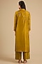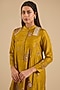 Featuring a yellow kurta in mulberry silk base with kantha embroidery. It is paired with pants. Accentuate it with block heels and statement earrings for festive ceremonies.