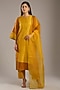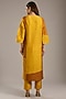 Featuring a yellow kurta in mulberry silk base with screen print. It is paired with pants and a dupatta. Accentuate it with stud earrings, embellished flats and a bag for a festive occasion, haldi or cultural events.