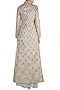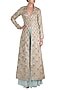 Featuring a silver skewed floral sherwani jacket in silk organza, tissue and georgette base with embroidery and powder blue cloud painting. It is paired with a contrasting powder blue pants.