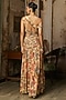 DiyaRajvvir features a beige one-shoulder blouse in crepe and georgette base with featherfall print. It is paired with a printed skirt having a side slit. Style it with meenakari earrings, heels and a clutch for sangeet, roka, engagement or wedding festivities.