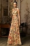 Beige Crepe Featherfall Printed Slit Skirt Set