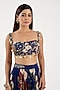 Featuring a blue tiered saree in crepe and georgette base with floral print. It is paired with a leaf printed blouse. Style with dangler earrings, soft curls, and nude heels, perfect for weddings, receptions or festive celebrations.
