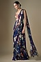 Blue Georgette Floral Printed Draped Tiered Skirt Saree Set