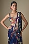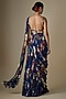 Featuring a blue draped tiered skirt saree in georgette and butter crepe base with floral print. It is paired with a printed blouse. Accentuate it with pearl jewellery and heels for a wedding or sangeet ceremony.