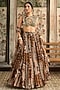 Diyarajvvir presents a caramel brown lehenga in georgette base with jaal print. It is paired with a printed blouse, a cancan and a dupatta. Style it with crystal danglers, a sleek ponytail, and metallic heels, perfect for cocktail parties, sangeet, or wedding ceremonies.