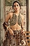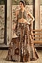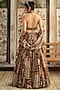 Featuring a caramel-colored lehenga in tulle and georgette base with print. It is paired with a printed halter blouse and a dupatta. Accentuate it with statement jewellery and heels for a cocktail or sangeet ceremony.