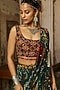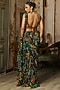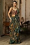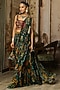 Dark Green Crepe Coral Veil Printed Draped Skirt Saree Set