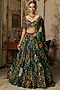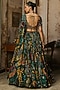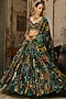 Dark Green Crepe Coral Veil Printed Lehenga Set