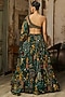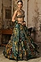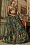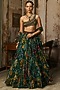 Dark Green Tulle Coral Veil Printed Lehenga Set