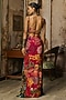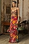 Deep Red Bemberg Satin Coral Veil Printed Skirt Set