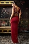 Deep Red Crepe & Lycra Dhoti Skirt Set
