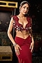 Diyarajvvir presents a deep red dhoti skirt in crepe and lycra base. It is paired with a blouse having a deep neckline and 3D cutwork detailing. Style it with statement earrings, a crystal clutch, and metallic heels to elevate the glamour. Ideal for grand receptions, evening cocktails, or a wedding sangeet.