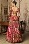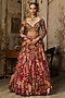 Deep Red Georgette Coral Veil Printed Lehenga Set