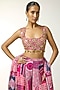 Featuring a fuchsia blouse in crepe and georgette base with a square neck and butta print. It is paired with jaal printed sharara pants and a dupatta. Accentuate it with dangler earrings and heels for a festive occasion or sangeet ceremony.