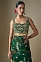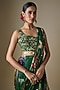 Featuring a green draped tiered skirt saree in georgette and butter crepe base with floral print. It is paired with a printed blouse having a square neck. Accentuate it with kundan polki jewellery and heels for a wedding or mehendi ceremony.