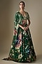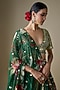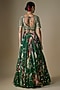Featuring a green lehenga in georgette and butter crepe base with floral print. It is paired with an embroidered blouse, a printed dupatta and a cancan. Accentuate it with kundan polki jewellery and heels for a wedding or mehendi ceremony.