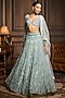 Featuring an ice blue lehenga in tulle base with embellishments. It is paired with an embellished blouse and a dupatta. Accentuate it with zircon jewellery, clutch bag and embellished heels for a stylish ensemble, ideal for engagement, sangeet nights, or wedding ceremony.