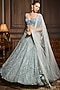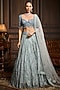 Featuring an ice blue lehenga in tulle base with embroidery. It is paired with an embroidered blouse and a dupatta. Accentuate it with zircon jewellery, clutch bag and embellished heels for a stylish ensemble, ideal for engagement, sangeet nights, or wedding ceremony.