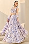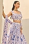 Featuring an ivory and blue lehenga in georgette base with floral print. It is paired with a printed blouse and a dupatta. Accentuate it with pearl jewellery and strappy heels for festive occasions, cocktail or daytime weddings.