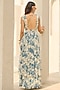 Ivory & Blue Georgette Floral Printed Ruched Layered Dress