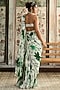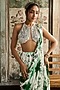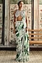 Ivory & Green Crepe & Georgette Floral Printed Tiered Saree Set