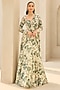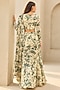 Featuring an ivory and green saree in georgette base with floral print. It is paired with a printed blouse. Accentuate it with zircon jewellery and block heels for festive celebrations, mehendi ceremony or daytime weddings.