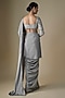 Light Grey Armani Satin Pre-Draped Skirt Saree Set
