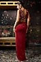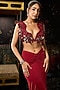 Featuring a maroon dhoti skirt in net lycra and shantoon base. It is paired with an embroidered blouse. Accentuate it with statement jewellery and heels for a cocktail or sangeet ceremony.