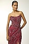 Featuring a maroon and red trail skirt in satin lycra and shantoon base with embellishments. It is paired with an embellished corset blouse. Accentuate it with statement jewellery and heels for a cocktail or sangeet ceremony.