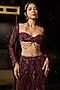 Diyarajvvir presents a maroon trail lehenga skirt in tulle base with embellishments and cancan. It is paired with a blouse having crystal embellishments. Style it with statement earrings, a crystal clutch, and metallic heels to elevate the glamour. Ideal for grand receptions, evening cocktails, or a wedding sangeet.