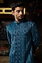 Featuring a blue kurta in dola silk base with cutdana and thread embroidery. It is paired with pants. Elevate this kurta set with embroidered mojaris, a dupatta for a festive occasion, sangeet ceremony or intimate wedding?rituals.