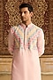 Featuring a blush pink kurta in cotton silk base with thread and mirror floral embroidery. It is paired with pants. Perfect attire for festive occasions or pooja ceremonies, exuding traditional charm and elegance.