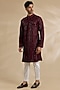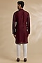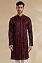Featuring a maroon kurta in dola silk base with cutdana and thread embroidery. Style it with pants, kolhapuri sandals for a festive occasion, wedding or engagement ceremony.