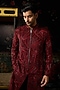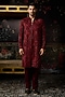 Featuring a maroon kurta in dola silk base with thread and cutdana embroidery. Style it up with pants, a stole, mojaris and a mala for a wedding or sangeet ceremony.