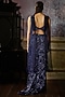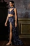 Midnight Blue Tulle Embellished Slit Trail Skirt Set
