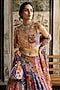 Diyarajvvir presents a multi-colored lehenga in crepe and georgette base with abstract jaal print and a can-can. It is paired with a printed blouse having a criss-cross back, a dupatta and a potli bag. Style it with kundan jewellery, a gajra bun and embellished heels for a regal touch, perfect for sangeet nights, vibrant festive celebrations, or destination weddings.
