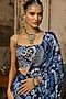 Navy Blue Crepe Featherfall Printed Draped Saree Set
