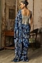 DiyaRajvvir features a navy blue draped saree in tulle and georgette base with coral veil print. It is paired with a gunmetal grey corset. Style it with meenakari earrings, heels and a clutch for sangeet, roka, engagement or wedding festivities.