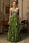 Pear Green Crepe Coral Veil Printed Corset Gown
