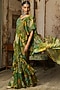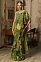 Pear Green Crepe Coral Veil Printed Ruffled Skirt Saree Set