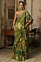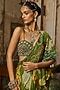 DiyaRajvvir features a pear green draped ruffled skirt saree in crepe, organza and georgette base with coral veil print. It is paired with an embellished blouse. Style it with meenakari earrings, heels and a clutch for sangeet, roka, mehendi or wedding festivities.