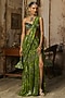 Pear Green Crepe Coral Veil Printed Slit Skirt Saree Set