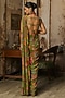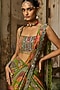 DiyaRajvvir features a pear green dhoti skirt saree in crepe base with featherfall print and embroidery. It is paired with a printed blouse. Style it with meenakari earrings, heels and a clutch for sangeet, roka, mehendi or wedding festivities.
