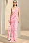 Featuring a pink saree in georgette base with floral print. It is paired with an abstract floral printed blouse. Accentuate it with zircon jewellery and block heels for festive celebrations or daytime weddings.