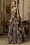 DiyaRajvvir features a plum draped tiered skirt saree in crepe and georgette base with featherfall print. It is paired with a printed blouse. Style it with meenakari earrings, heels and a clutch for sangeet, roka, engagement or wedding festivities.