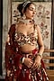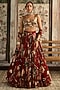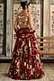 Diyarajvvir presents a red lehenga in crepe and georgette base with floral print. It is paired with a printed blouse, a cancan and a dupatta. Style it with crystal danglers, a sleek ponytail, and metallic heels, perfect for cocktail parties, wedding, or evening celebrations.