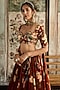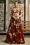 Diyarajvvir presents a rust lehenga in crepe and georgette base with floral print. It is paired with a printed blouse, a cancan and a choker dupatta. Style this lehenga with a statement choker necklace, dewy makeup, and a sleek bun to highlight the neckline and intricate detailing, perfect for sangeet nights, vibrant or destination weddings.