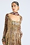 Featuring a sage green anarkali in georgette. It is paired with a dupatta. Style it with statement earrings and heels for a wedding, sangeet or engagement ceremony.