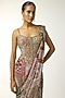 Featuring a sage and maroon pre-draped saree in crepe and georgette base with jaal abstract print. It is paired with a printed corset. Accentuate it with statement jewellery and heels for a cocktail or sangeet ceremony.