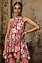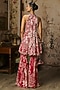 Scarlet Red Crepe Coral Veil Printed Bell-Bottom Pant Set